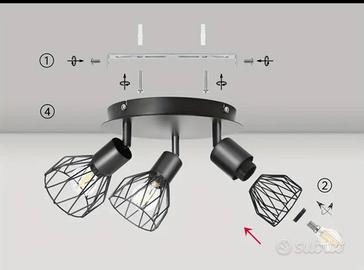 Faretto da soffitto a LED E14 orientabile a 350°, plafoniera E14 a 3 vie nera, applique da parete, faretti da soffitto a LED, per cucina, soggiorno, camera da letto, senza lampadine E14