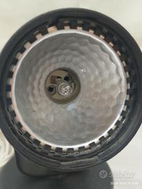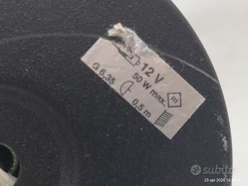 Faretto Libreria Eritrea 12 V 50 W G 6,35 0,5 m lampada, il faretto è funzionante non riusciamo ad accenderlo perché "come da descrizione trovata su internet" per funzionare questo faretto richiede un trasformatore per funzionare con la 230V Altezza dipende dall'inclinazione cm 17/19 Diametro del faretto dove alloggia la lampadina cm 5,5 Peso oltre 1 kg, il faretto è fornito di cavo elettrico lungo come da foto. DI SEGUITO LA DESCRIZIONE TROVATA SU INTERNET 📩 Questa etichetta indica le specifiche tecniche per la lampadina di ricambio corretta da utilizzare in questo apparecchio. Caratteristiche della Lampadina Attacco:G 6,35(un attacco a due pin con una distanza di 6,35 mm tra i centri dei pin). Tensione:12 V(richiede un trasformatore, non va collegata direttamente alla 230V). Potenza Massima:50 W(non superare questo wattaggio per evitare surriscaldamenti). Altre Informazioni 0,5 m:Indica ladistanza minima di sicurezzache deve esserci tra la lampadina e gli oggetti illuminati per prevenire incendi o danni da calore. Simbolo con "III" nel rombo:Indica che l'apparecchio è inClasse III, ovvero progettato per essere alimentato solo a bassissima tensione di sicurezza. Simbolo del cestino barrato:Non smaltire nei rifiuti domestici; va trattato come rifiuto elettronico (RAEE).