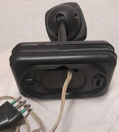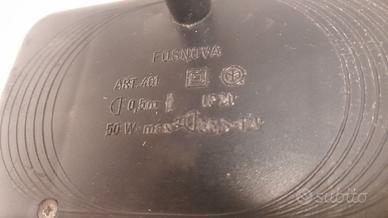 faretto orientabile con trasformatore incorporato, da pavimento o da parete con cavo, spina e lampadina sostituibile con LED, 13x7x14 cm.
