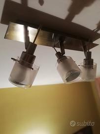 faretto/spot a 3 luci orientabili in acciaio spazzolato e vetro satinato in ottimo stato