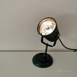 Particularissimo faretto spot da teatro anni 70. Struttura in ferro con vernice goffrata nera.