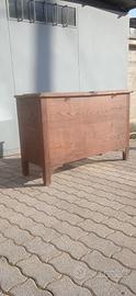 Vendo "Farinera" (che sarebbe una madia a due scomparti che nelle campagne del Cuneese, nei primi del '900, serviva per tenere le granaglie, le farine, la crusca per dare agli animali). Ha 2 sportelli che possono essere chiusi, oppure senza coperchi in legno dove c'è una rete metallica per arieggiare. In legno di castagno le misure sono 123 lunghx46,5 prof x81,5 altezza
