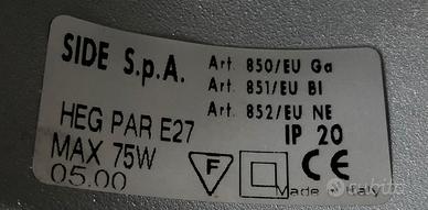 Faro marca SIDE spa con lampada, (La lampada può essere sostituita con quella a led). IL faro può essere montato singolarmente in modo tradizionale oppure con binario uno o più faretti. Condizioni: ottime come nuovo. Caratteristiche tecniche nelle foto. Su richiesta fornisco anche il canaletto (binario che va a soffitto per l'aggancio e lo scorrimento), varie misure cm. 100, 180, 200 più tutti gli accessori di montaggio. Disponibilità n.30 fari. Spedizione: uno o più fari possono essere spediti con TUTTO SUBITO, il/i canaletto/i devono essere spediti a parte per via della lunghezza. Peso faretto con lampada kg.0,800 +kg.1 canaletto. La spesa indicata è per un solo faro per lo stock prezzo scontato vantaggioso. Lunghezza con l’attacco in foto cm.27 senza attacco cm.23 diametro cm.13.