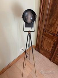 Lampada da terra faro proiettore teatrale con treppiede fotografico Zeiss.