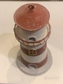 Piccolo soprammobile Faro in metallo dipinto a mano (altezza 15 cm) per arredamento navale/marittimo.