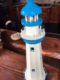 Come nuovo , FARO IN STILE MARINA , oggetto tipico dell' arredamento in stile nautica , l'altezza e' di 65 cm , come notate dalla foto nella parte inferiore del faro vi è una levetta che permette l' accensione .