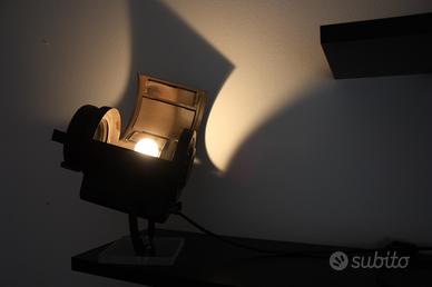 Lampada da tavolo di dimensione medio/piccolo, puoi orientare facilmente la luce dove serve grazie alla corpo regolabile. Puoi orientarla verso il soffitto, per ottenere un'illuminazione indiretta soffusa e morbida, o verso un oggetto che vuoi valorizzare. La forma è interessante a prescindere dal fatto che la lampada sia accesa o spenta: un faro teatrale/cinematografico usato e ricondizionato, ora allestito con portalampada Edison E27 e lampadina led 4,5W, cavo di mt 3, interruttore passante, spina civile italiana da 10 A. Misure indicative d'ingombro: altezza 29 cm, larghezza 19 cm, profondità 27 cm. Questa lampada ha una forte personalità ma si integra perfettamente in case di diversi stili, uffici o negozi. Il riflettore è montato su un supporto anch'esso riciclato con una scelta tra le seguenti opzioni: legno multistrato proveniente da un teatro in ristrutturazione (cm 3 di spessore) oppure plexiglass trasparente proveniente da espositori fieristici (cm 1,5 di spessore). I fari e le basette in quanto riciclati mostrano i segni del tempo: ammaccati, strisciati, imperfetti, unici, per questo motivo l'oggetto in foto indica solo la tipologia del faro ed è puramente dimostrativo. Ogni pezzo sarà da noi firmato e numerato. Da posizionare fuori dalla portata dei bambini, per motivi di sicurezza. ADOTTA UN FARO Acquistando questa lampada da tavolo sostieni il nostro progetto "Adotta un faro", il ricavato delle vendite va a sostenere i tecnici teatrali che lavorano al recupero dell'oggetto che acquisti. L'idea nasce dall'esigenza di reinventarsi e di denunciare la situazione di tutti i lavoratori dello spettacolo al momento fermi e disoccupati. La necessità per Ombre Rosse Srl (service teatrale) e per noi tecnici teatrali è quella di rimettersi in gioco senza abbandonare le proprie competenze, né le proprie passioni o il proprio lavoro. Vogliamo vincere il tempo, esaltare l'imperfetto, recuperare il non più utile. La lampade da tavolo che rigeneriamo proven
