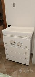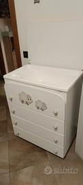 vendo fasciatoio compreso di vaschetta per bagnetto e fasciatoio. Il fasciatoio poggia su una cassettiera composta da n 4 cassetti e ha dimensioni 48 *75 x h 93 cm. no spedizione