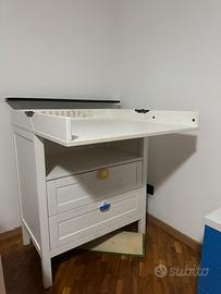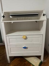 Fasciatoio con cassettiera ikea. Il pianale puó essere ripiegato quando non utilizzato. I pomelli dei cassetti sono stati cambiati in quanto sostituiti con due piu carini. Buone condizioni, no spedizioni
