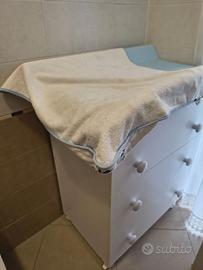 Il fasciatoio ha una vasca di plastica interna per il bagno e tre ampi cassetti. La parte superiore ha un cuscino da sostituire. Il ricambio è molto diffuso ed economico.
