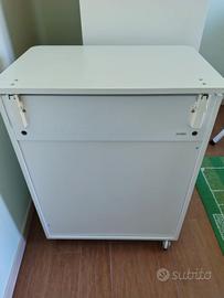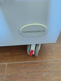 Fasciatoio Foppapedretti in legno con vaschetta per bagnetto estraibile e tre cassetti. Ruote gommate antigraffio con freno. No materassino. 69 cm lunghezza. 89 cm altezza. 47 cm profondità. Unico difetto disegni scoloriti. Solo ritiro venduto intero.