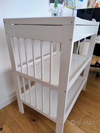 Fasciatoio Ikea Gulliver colore bianco dimensioni lunghezza 82cm x profondità 54cm e altezza 95, completo di materasso e fodera come in foto.
