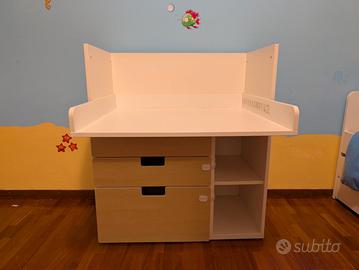 Vendo fasciatoio IKEA modello SMÅSTAD, struttura bianca con 3 cassetti color betulla. Il mobile è estremamente funzionale: offre molto spazio per pannolini e vestiti e, quando il bambino cresce, il piano si abbassa facilmente diventando una pratica scrivania.