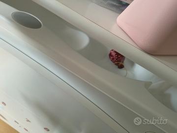 vendo fasciatoio Italbaby bianco con 3 cassetti e vaschetta per il bagnetto integrata. il fasciatoio viene fornito con il suo cuscino da applicare tramite biadesivo al piano superiore. non presenta danni, solo alcuni segni di timbro sul lato frontale.