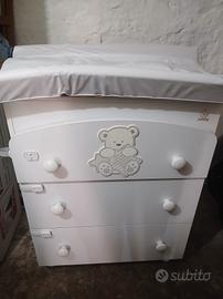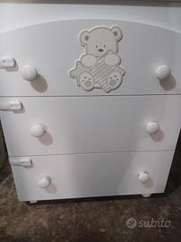 Fasciatoio neonato come nuovo con 3 cassetti,e ruote . inoltre sui cassetti sono stati applicati le chiusure di sicurezza removibili.