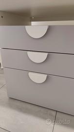 vendo fasciatoio per bambini che diventa anche scrivania con la possibilità di alzare e abbassare la base in legno dove poggiare il bambino, Marca Ikea. vendo per inutilizzo. è in perfette condizioni, non posso spedire, ritiro solo in loco a Terlizzi. prezzo non trattabile perché è davvero in perfette condizioni e il prezzo è la metà. misure: altezza totale 100 cm , altezza fino alla base come in foto 72cm( con possibilità di alzarla) , larghezza 90 cm , profondità 55cm, profondità totale con base in legno 80cm. cubotti: larghezza 27,5 altezza 30cm, profondità 53,5. cassetti interno: larghezza 52 cm, profondità 52 cm , altezza 9,5 cm. cassettone altezza 21 cm. cassetti vista frontale 60 cm.