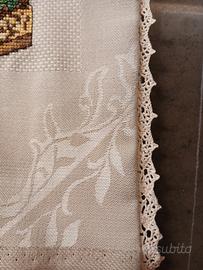 Federa per cuscino (per esampio per un divano) ricamata a mano a punto croce, rifinita con orlo cucito a mano, chiusura con velcro (tondi adesivi di velcro); mai usata, regalata da amica; misure 48x52 cm circa