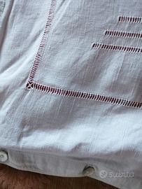 Federa in lino ricamata a mano. Con monogramma e bottoni di madreperla. Mai usata, solo rinfrescata. Da stirare ma, se preferite, posso farlo io prima della consegna o spedizione. Misure in foto. Prezzo leggermente trattabile.