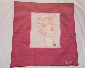 federa con decorazione in rilievo realizzata a mano con la tecnica del punch needle. dimensioni 42x42cm