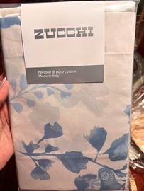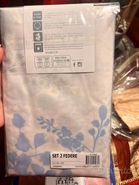 Set di due federe Zucchi 50x80 in percalle di puro cotone, nuove. - Fantasia floreale con fiori blu e rametti verdi. - Made in Italy ancora imballate