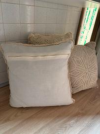 Vendo tre cuscini foderati fatti completamente a mano con la tecnica dell'uncinetto. Questi cuscini sono perfetti per aggiungere un tocco di eleganza e artigianato al tuo salotto, camera da letto, o anche in giardino.