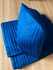 Vendo 3 federe linea Karit di Ikea, colore blu, trapuntate, cerniera nascosta dal bordo che rifinisce tutti i lati, misure 60x40 cm. Tessuto esterno ed imbottitura della trapunta 100% poliestere, lavabili in lavatrice. Nuove, mai usate.