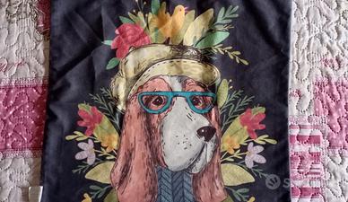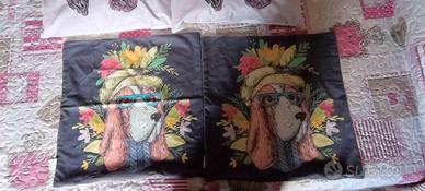Vendo due coppie di federe per cuscini, misura 45 x45. Entrambe con motivo cagnolino. Una coppia sui toni del rosa, e l'altra sui toni del grigio.