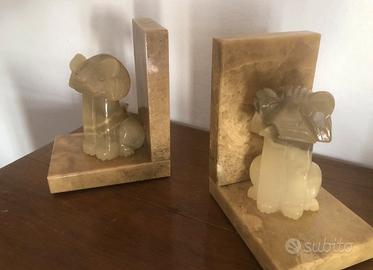Fermalibri Vintage In Alabastro E Marmo anni 50 Con Leoni Orientali.