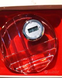 Fermacarte da scrivania in cristallo cm 10 con orologio spessore cm 3.5