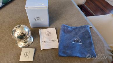Vendo causa inutilizzo fermacarte placcato in argento a forma di mappamondo intitolato “A Gonfie Vele”, con una altezza di 9 cm. Questo raffinato oggetto unisce funzionalità e estetica, offrendo non solo un modo pratico per tenere in ordine documenti e fogli, ma anche un elemento decorativo che aggiunge un tocco di stile a qualsiasi ambiente. Marca Acca.