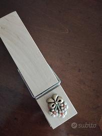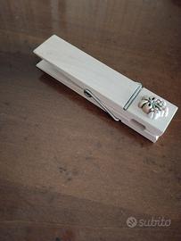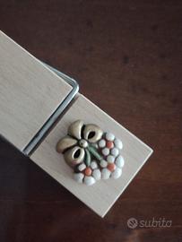 Fermacarte Thun originale in legno con disegno fiore. Nuovo