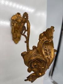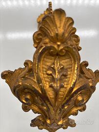 L'oggetto nell'immagine sembra essere un fermatenda o un applique decorativo in metallo dorato in stile barocco o Rococò.