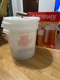 Ideale per produrre in casa birra in modo pratico e naturale. Composizione: I brochure con istruzioni, 2 fermentatore 25 litri con foro per rubinetto, 2 coperchi a chiusura ermetica con foro per gorgogliatore, I secchio travaso, gorgogliatore, Irubinetto, termometro adesivo, Itubo travasatore, densimetro, I provetta da h. 26 cm, tappi a corona ®️ 26 mm, paletta per birra, busta di metabisolfito da 250 gr., spazzolino lavabottiglie, tubo per imbottigliamento,1 TAPPATORE CORONA PER BOTTIGLIA CORONA DA 26MM. Adatto a soddisfare la produzione di circa 23 litri di birra,