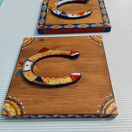 Quadretti con ferri di cavallo ,stile carretto siciliano ,decorati a mano