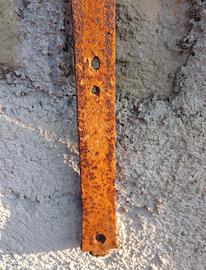 Ferro antico da arredamento, da appendere, dei primi del 1700. Naturale come lo ha conservato il tempo. Vera occasione pezzo unico forgiatura Veneta. Lunghezza cm 44 larghezza 4 cm.