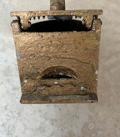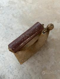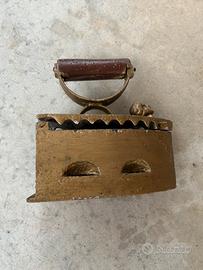 Antico ferro da stiro a carbone in ghisa con manico in legno degli inizi del '900.