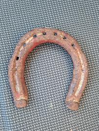 Ferro di cavallo, originale, usato, articolo decorativo vintage (portafortuna) o per collezione. Colore rosso.
