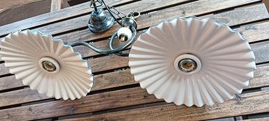 Ferroluce C 199 BL. Lampada a sospensione rustica, a due luci, in ceramica lucida con struttura in metallo