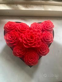 Vendo scatola a forma di cuore con rose stilizzate sul coperchio. Regalo ideale per laFesta della mamma. La scatola è bella capiente per contenere piccoli oggetti Nuovo