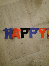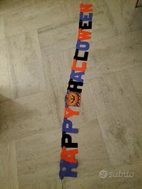 Addobbo Happy Halloween da appendere, con zucca al centro. Il festone decorativo misura 143 cm.