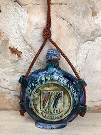 Materiale: La fiaschetta è realizzata in ceramica, con una finitura smaltata in tonalità di blu e verde scuro.