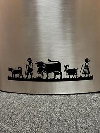 Elegante hip flask in acciaio inossidabile con raffinata incisione “Poya”: una scena alpina con pastori, cani e animali in processione 🐄🐐