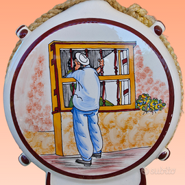 Oggetto unico in vendita: fiaschetta colombiana vintage in ceramica artigianale, decorata a mano con scena di vita quotidiana e frase d’amore popolare latino-americana. Provenienza: Lozaería Colombiana.Arredare stile etnico, romantico, bohémien. Oggetto da collezione e conversazione garantita.