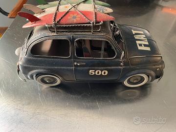 Riproduzione in latta Fiat 500 con surf misure 34x18 in ottime condizioni.