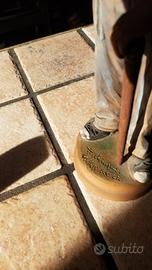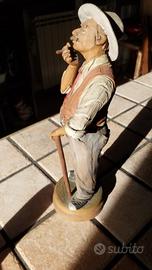 Dettaglio Soggetto Figura maschile (probabilmente un popolano o contadino) Autore Francesco Navanzino (Caltagirone) Firma/Marchio Firma incisa a mano sulla base: "F. Navanzino - Caltagirone" Materiale Ceramica policroma dipinta a mano Epoca XX Secolo (indicativamente tra il 1970 e il 1990) Altezza Da confermare (misurala per la descrizione finale) Stato di Conservazione Molto Buono. La figura appare integra, con i dettagli delicati (baffi, mano, sigaro, cappello, bastone) in ottime condizioni. Lieve usura superficiale coerente con l'età. La statuina cattura un momento di riflessione quotidiana. Rappresenta un uomo anziano con baffi prominenti, vestito con un cappello a tesa larga, gilet color terracotta e cravatta rossa. Con una mano tiene un sigaro alla bocca, mentre con l'altra si appoggia a un bastone. Il realismo espressivo e i colori caldi sono tipici dello stile di Navanzino. Note Tecniche Lavorazione: La scultura è ricca di dettagli materici, come la texture dei baffi e del gilet, realizzati a mano. La policromia è vivida e ben conservata. Autenticità: La firma chiara e incisa sulla base ne garantisce la provenienza autentica dalla bottega di Francesco Navanzino a Caltagirone.