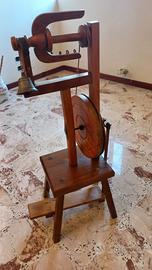 Fila lana – Arcolaio a pedale – primi anni 50 - L'oggetto è costituito da un telaio in legno con una ruota azionata a pedale che, facendo ruotare una bobina di legno, veniva utilizzato per avvolgere la lana su un rocchetto. In ottimo stato di conservazione in relazione alla vetustà. Carino anche da usare come oggetto da arredamento.