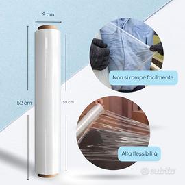 Raylu Paper - Film per imballaggio industriale e per pallettizzare, rotolo di carta film resistente in plastica ad alta elasticità per traslochi e spedizioni (Trasparente, 6 pezzi) Confezione da 6 rotoli di pellicola trasparente per tutti i tipi di imballaggi da 50 cm x 200 metri circa. Utilizzo multiplo: sia che tu stia avvolgendo pallet per carichi o mobili, questa pellicola elastica è ideale come protezione durante lo spostamento. Puoi utilizzare la nostra pellicola trasparente per imballare varie cose, come scatole e esigenze logistiche. Ideale per traslochi e conservazioni: questo rotolo di pellicola elastica garantisce che i tuoi oggetti di valore rimangano al sicuro, durante il tuo prossimo spostamento o durante la spedizione. Fornisce protezione contro gli elementi, l'umidità può aiutare a prevenire graffi, urti e ammaccature sui vostri oggetti. Basta allungare, avvolgere. Elevata capacità di allungamento: realizzata in plastica (polietilene) di alta qualità, la pellicola aderisce a se stessa per una tenuta perfetta con un tratto superiore. Prodotto in Unione Europea. 100% soddisfazione: se per qualsiasi motivo non sei soddisfatto al 100% del tuo rotolo di pellicola, ti preghiamo di contattarci immediatamente. Il nostro team di assistenza clienti senza problemi lavorerà per risolvere qualsiasi problema tu abbia.