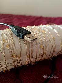 Filo di luci da interno lungo circa 11 metri con cavo lungo 1,5 metri. Si attaccano alla presa tramite una presa USB e si accendono con pulsante ON/OFF.