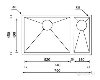 Lavello incasso filotop cm. 79 x 45 - 1 vasca sx + 1/2 dx - inox satinato - CM Lavelli - 011925 SX