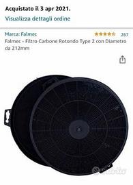 Filtro Cappa Falmec Carbone Rotondo Type 2 con Diametro da 212mm Nuovo e originale Falmec Pezzi ancora imballati Possibilità di consegna a mano
